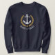 Ein eigens entworfener nautischer Bootsanker, goldene Lorbeerfische und ein Goldstar mit Ihrem Personalisierten Namen oder Schiffsnamen auf einem marineblauen Sweatshirt. Mehrere Shirt-Farben zur Auswahl. Macht ein großartiges Geschenk.