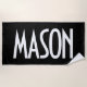 Ihr Name, fett weißer Text | Schwarz Strandtuch