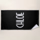 Ihr Name, fett weißer Text | Schwarz Strandtuch