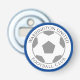 Ihr Football Club Name auf einem Flaschenöffner. Fußball Club Souvenir oder Geschenk. Blaues Farbthema.