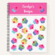 Ein nützliches Notizbuch, das in der Küche verwendet wird, ist mit einem Muster von handgezeichneten, hübschen, niedlichen Kuchen in Zuckerbonbons dekoriert. Sie können es mit Ihrem Namen und Ihren Worten personalisieren.