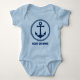 Baby Ein Stück Bodysuit mit personalisiertem Namen, Bootsnamen oder anderem Text und einem eigenen nautischen Anker in marineblau auf hellblau puderblau. Macht ein großartiges Geschenk für jeden Anlass.