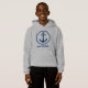 Jungs hoodie mit personalisiertem Namen, Bootsnamen oder anderem Text und einem eigenen nautischen Anker in marineblau auf grau. Macht ein großartiges Geschenk für jeden Anlass.