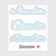 Dekorieren Sie Ihren Laptop, Ihre Wasserflasche, Ihr Gehäuse oder andere Artikel mit drei individuellen Aufklebern, die Ihren Namen in 3 verschiedenen Sky Blue-Script-Schriftart enthalten. Fügen Sie Ihren Namen in die Sidebar ein. Wählen Sie "matte weiß" in der Sidebar, um den transparenten Hintergrund um Ihren Namen weiß zu machen.