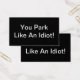 Müde von Menschen Parken wie Idioten? Verlass dies auf dem Auto der nächsten Person, die zwei Parkplätze nimmt, Parkplätze zu nah für dich oder Parks in einer Parkzone ohne Parkplatz.