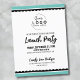 Eine unterhaltsame, aber schlicht Schwarz-Weiß-Einladung für eine große Firmenöffnung oder ein Party- oder Produktstart. Fügen Sie Ihr eigenes Logo an die Spitze, um es mit Ihrem Branding zu versehen, und Sie können die aquamarine oder türkisfarbene Farbe in Schwarz ändern oder Ihren Markenfarben anpassen. Sie können sogar die Jakobsfarben ändern. Eine schlichte Klatsche für eine spielerische Touch, die nicht zu viel ist. Sie können alle Texte und Hintergründe in jede beliebige Farbe ändern und sogar auf andere Schriftart umschalten, die besser zu Ihrem Branding passen. Egal, ob Sie ein neues Produkt für Ihr Unternehmen herausbringen, oder eine Zusammenarbeit mit einem Einfluss auf die sozialen Medien, eine neue Boutique eröffnen, oder sogar ein Open House oder eine Firmenveranstaltung durchführen, Sie können dies zu Ihrem eigenen machen. Ihre Logos Grand Opening Business Launch Party Postcard Als gedruckte Einladung oder als Download erhältlich laden Sie ein, E-Mail zu senden oder vor Ort gedruckt zu haben!