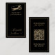 Luxuriöses Design mit goldener Schere Silhouette, um mit Ihrem Namen, QR-Code und Text zu personalisieren. Stell dich mit diesem einzigartigen schwarzen Design heraus und schreibe auf diese Karte mit einem weißen oder goldenen Tintenstift.