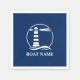 Boat Individuelle Name oder Boat Name mit einem klassischen Leuchtturm in Weiß auf Navy Blue Party Cocktail Napkins.