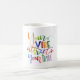 Diese Spaßregenbogen-Kaffee-Tasse kennzeichnet das Freundschaftszitat, ", das Ihr Vibe Ihren Stamm" auf einer Seite der Tasse anzieht.