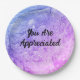 Diese Dankeschön-Papier-Teller sind eine gute Möglichkeit, eine große Gruppe von Mitarbeitern, Lehrern oder Dienstleistern lassen wissen, dass sie geschätzt werden. Das abstrakte Marmormuster zeigt die Farben Rosa, Blau und lila. Text anpassen, falls gewünscht.