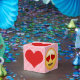 Emoji Liebe Geschenkboxen. Sie können Ihre eigene Farbe anpassen (in Rosa dargestellt). Fügen Sie Ihren eigenen Text oder andere Grafiken hinzu.