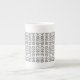 Diese verborgene Botschaft der Knochen China Tasse verbindet Eleganz mit einer spielerischen modernen Drehung. Auf den ersten Blick sieht das gespiegelte Schwarz-Weiß-Textmuster wie ein einfaches grafisches Design aus, sieht aber naher aus, und Sie werden sehen, wie sich kluge Wiederholungen in schlichter Sicht verstecken. Ideal, um einen Morgenkaffee, einen beruhigenden Tee oder sogar eine gemütliche heiße Schokolade zu genießen, verwandelt es sich in ein alltägliches Ritual in eine stilvolle kleine Überraschung....PERFECT FOR: Eine Mutter, Tochter, Schwester, Oma, Ehefrau, Freundin oder Partnerin, die einen guten Trinkbehälter mit Spaß genießen, Freunde einen Geburtstag feiern, eine sonderbare Altersüberraschung oder ein neues Zuhause-Geschenk fügen Sie einen Teil der Adresse, einzigartigen und ungewöhnlichen Geburtstag, Weihnachten, Altersvorsorge.