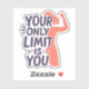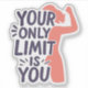 Ein motivierend Aufkleber für Studierende und Unternehmerinnen. Lila Text und das Zitat: Ihr einziges Limit sind Sie. Eine Grafik einer starken Frau.