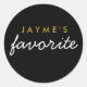 "Ihre" Lieblings-Snack-Round-Sticker in Schwarz Gold und Weiß Beachte diesen Aufkleber an den Lieblings-Snack der Braut! Sticker für jede Ihrer Hochzeitsfeiern - Verlobungsfeier, Probe-Dinner, Zeremonie, Cocktail-Stunde, Hochzeitsempfang, Sonntagsbrunch, Brautparty, Junggeselinnen-Abschied, Hennen Party und mehr! Zeigen Sie Ihren Lieblingssnack oder Ihre Leckerei als Gefallen für Ihre Gäste. Erhältlich in verschiedenen Größen, Farben und Schriftart