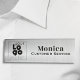 Personalisieren Sie diesen individuelle Name einfach mit einem Firmenlogo oder einer Grafik, zusammen mit dem Namen eines Mitarbeiters und seinem Berufstitel oder einem anderen benutzerdefinierten Text. Das Objekt ist Acryl mit einem magnetischen Rücken Verschluss (nicht Magnet mit Schrittmachern) und verfügt über einen platinsilbersimulierten metallisch gebürsteten Radialgradientendruck. Keine Mindestbestellmenge und keine Einrichtungsgebühr.