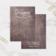 Diese fette, unverwechselbare Karte verfügt über Vorlagenplatzhalter, mit denen Sie Ihr eigenes Logo oder Ihre eigene Grafik vorne anbringen können, und Kontaktdetails auf der Rückseite. Der Hintergrund der Karte war mit einer Vintagen Grunge-Textur und braunen und lila Farbtupfern bedeckt.
