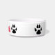 Ihre Namenschüssel des Haustieres ist eine entzückende Nahrungsmittelschüssel mit vier Tatzendrucken um sie. Diese Schüssel hat den Ihren Namen des Haustieres auf der Front in den großen Buchstaben für seinen/Namen. Einfache Schablone verfügbar Farben ändern, wenn Sie würden den Ihren Namen des Haustieres möchten und eintragen.