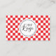 Erstellen Sie Ihr eigenes kleines Firmenlogo dekorative Visitenkarten mit einem anpassbaren Karo-Muster auf der Vorderseite. Passen Sie die Farben im Kreis-Overlay hinter Ihrem Logo an. Passen Sie die digitalen Farbtöne des Schachbretts an, um sie mit Ihrem Logo abzustimmen. Passen Sie die elegante Kalligraphie und den modernen Schriftart-Stil oder die schwarze Farbe des personalisierten Textes nach Bedarf an.