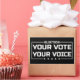 Das Bild zeigt die Schrift "IHRE STIMME IHRE STIMME" in klarer, moderner Typografie. Die Botschaft unterstreicht die Bedeutung von Wahlen und politischer Partizipation. Weißer Schriftart