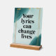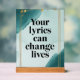 Transformieren Sie Ihren Arbeitsbereich mit unserem atemberaubenden Acryl- und Holzblock-Schreibtisch mit der inspirierend Meldung "Ihre Texte können das Leben verändern". Dieses einzigartige Kunstwerk ist nicht nur ein dekorativer Gegenstand; es ist eine tägliche Erinnerung des Powers von Wörtern und Kreativität. Dieses mit hochwertigem Acryl und massivem Holzfußboden gefertigte Druckwerk besticht durch eine moderne Ästhetik, die sich nahtlos mit jedem Dekorstil von zeitgenössisch bis rustikal verbindet. Die lebhaften Farben und die scharfen Details des Designs sorgen dafür, dass es sich dabei um einen idealen Konversationsstarter oder motivierend Stück für Ihr Büro, Studio oder Zuhause handelt. Erhöhen Sie Ihre Umgebung und inspirierte Sie sich und andere mit diesem schönen Schreibtischprint, der den transformativen Power von Musik und Texten feiert. Machen Sie noch heute eine Erklärung und lass Ihre Kreativität!