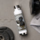Die Thermalflasche und das Bild einer männlichen, getufteten Ente, die in einem Naturschutzgebiet gepunktet ist