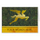 Ein goldenes, fliegendes Pferd über einem Weidenblattmuster, in Gelb- und Grüntönen, mit einem Platz, um Ihren Namen zu setzen. Goldene Texturen und ein Retro-Holzschnitt ergänzen den Schreibbereich im Inneren.