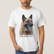 Dieser weiße T - Shirt hat ein Foto eines gut aussehenden deutschen Schäferhundes (manchmal auch als Alsation bezeichnet) mit Worten, unter denen man personalisieren kann. Das Foto ist aus dem Kopf des Hundes, fast gegenüber der Kamera.