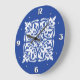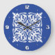 Ikat-Damast-Muster - Kobaltblau und Weiß Große Wanduhr