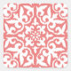 Ikat-Damast-Muster - Korallenrosa und Weiß Quadratischer Aufkleber