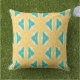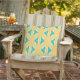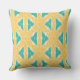 Vibrierender bunter Ikat Druck-gelbe und aquamarine Kissen. Groß für Patio-, Plattform- oder Gartenbank. Ändern Sie Gewebewahlen für Innenkissen.