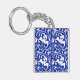 Ikat Floral Damask - Kobalt blau und weiß Schlüsselanhänger