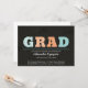 Ein dunkler Birkenhintergrund und funky Ikat-Briefe in Türkis und Orange sorgen für eine einzigartige Abschluss-Einladung.