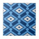 Keramik-Kachel in einem Navajo-Stammmuster mit gestreibender, Ikat-gewebter Textur - Denim blau und cremeweiß auf dunklem indigo/marineblau Hintergrund