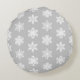 Ikat-Schneeflocken - Silbergrau und weiß Rundes Kissen