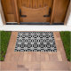 Doormat in einem stilisierten, vierpunktförmigen Sternmuster mit gestreiften, Ikat-gewebten Texturen - Weißes Muster auf schwarzem Hintergrund