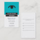 Ein stilisiertes blaues Auge blickt heraus von einem subtil pinstriped Türkishintergrund. Vervollkommnen Sie für opthamologists, Optometriker, Optiker oder gerade über jedes mögliches Geschäft, das die Augen beschäftigt. Verlassen Sie die Rückseite wie mit Verabredungsinformationen ist oder fertigen Sie sie zu Ihrem Mögen besonders an. Verfügbar in den abwechselnden Farben mit zusammenpassenden Produkten.