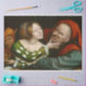 Dieses Design zeigt ein Gemälde des flämischen Meisters Quentin Matsys (1466-1530). Es zeigt einen älteren, lecheren Mann, der eifrig von einer jüngeren, schönen Frau angezogen wird, die den traditionellen Tropen darstellt, den das Alter den Menschen zum Narren machen kann. Er blickt liebenswürdig auf ihre Schönheit, und beide halten sich in einer Umarmung fest, aber die Frau hat einen Komplizen in einem Narren-Kostüm gekleidet, der seine Handtasche gestohlen hat: sie trickst ihn zu ihrem eigenen Vorteil. Einige Kunstkritiker haben bemerkt, dass das Gesicht des alten Mannes stark von einem grotesken zeichn von Leonardo da Vinci beeinflusst wurde, was das Werk zu einer interessanten Kombination nordeuropäischer Themen mit italienischer Kunst macht. Der Ursprung des Gemäldes ist in der Regel zwischen 1520 und 1525 datiert.
