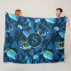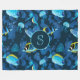 Ein Unterwasserdesign mit blauen und gelben tropischen Fischen, Quallen, Korallen und Seepferden. Fügen Sie Ihren Lebensräumen ein wenig tropisches Ozeanleben mit diesem coolen Meereswelt-Illustrationsmuster hinzu. Passen Sie die Fleecedecke mit Ihrem Monogramm an und machen Sie sie einzigartig.