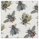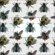 Eine der Bienen auf diesem Stoff hat einen großen, fett gelb und schwarz verschwommenen Körper mit durchsichtigen gelben Flügeln, während eine andere einen ganz schwarzen Körper mit einem roten Hinterteil oder, wenn Sie so wollen, hinter sich hat.