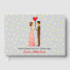 Feiern Sie die Liebe mit dieser skurrilen Braut- und Bräutigam-Illustration mit einem von süßen Händen gezeichnet Paar, das Herz austauscht, umgeben von zarten gelben Punkten auf einem hellgrauen Hintergrund. Dieses charmante und spielerische Design vereint die Freude und Romantik eines Hochzeitstages mit einem hellen, modernen Stil. Ideal für Paare, die an ihrem großen Tag einzigartige künstlerische Touchs Liebe finden, spricht dieses Kunstwerk mit Romantik, Kunstliebhabern und jedem, der eine Hochzeit mit einem lustigen und herzlichen Thema plant. Ideal für Hochzeitsaktivitäten, die einen charmanten visuellen Flair benötigen. Diese Illustration wurde entworfen, um romantische Anlässe mit Persönlichkeit und Wärme zu ergänzen und fügt jedem Hochzeitsfest ein wunderbares künstlerisches Element hinzu.