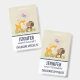 Benennen Sie Abzeichen mit einer niedlichen Abbildung mit einem Hirsch und einem kleinen Eichhörnchen, das eine Eichel und einen Schmetterling über ihren Köpfen hält. Diese bezaubernden Waldkreaturen auf einem Gras stehend, mit einigen skurrilen Pilzen an den Füßen. Weich brauner Hintergrund.