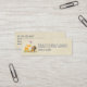 Mini-Visitenkarten mit einer niedlichen Abbildung mit einem Hirsch und einem kleinen Eichhörnchen, das eine Eichel und einen Schmetterling über ihren Köpfen hält. Diese bezaubernden Waldkreaturen auf einem Gras stehend, mit einigen skurrilen Pilzen an den Füßen. Hintergrund hat einen braunen Kraftpapier-Look.