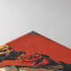 Die Abbildung zeigt einen mittelalterlichen Janissärkrieger, der vor einem roten Hintergrund stehend ist. Er ist mit einer Rüstung verkleidet, mit einem gelben Turban und einem roten Schal. Er hält ein Schwert in der rechten Hand und ein Stab in seinen links. Der Ausdruck des Kriegers ist ernst und seine Haltung ist zuversichtlich. Der Hintergrund ist ein einfaches Rot mit einigen verblassten gelben und weißen Akzenten, die ein Gefühl von Alter und Geschichte.