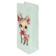 Geschenktasche mit einer Illustration eines bezaubernden Hirsches. Große Augen große Ohren mit einem großen Kopf und kleine braune Geweihe. Tragen Sie einen großen roten Bogen.