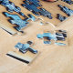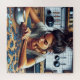 Eine niedliche Abbildung einer Frau mit dunklem Haar in einem unordentlichen Knäuel, die an ihrem Küchentisch sitzt und ein Puzzle mit Puzzle macht.