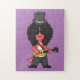 Illustration eines Allosaurus, der als Rockstar ve Puzzle