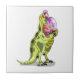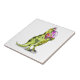 Illustration eines Lambeosaurus, der ein Ei hält. Fliese