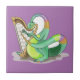 Illustration eines Plateosaurus, der die Harfe spi Fliese