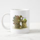 Illustration eines Stegosaurus, der ein Getränk tr Jumbo-Tasse