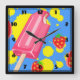 Illustration von Fun Pink Popsicle und Strawberrie Quadratische Wanduhr